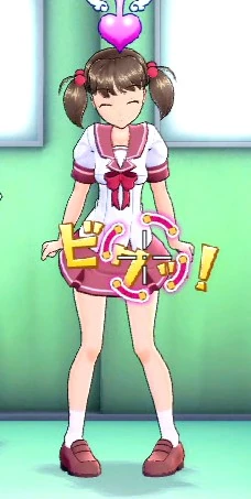 After Tokyo Game Show 2010, the game had become a hot topic, but Narita wasn't comfortable with releasing the game with its current appearance and expressions. During the event, the game was exhibited alongside THE iDOLM@STER 2, Dream Club Zero, and Otomedius Excellent, and it was evident that the graphical quality of the game was not keeping up with the rest of the market.[1] However, the game would be releasing in a mere month to month and a half. After consulting Inti President Takuya Aizu, they decided "Let's all push forward until the very end!" The visuals would be revamped to the best of their ability, citing alterations to the modeling of the legs and buttocks in Doki Doki Mode, creating a new shader, and changes to character expressions. Changes were made in real time based on the massive amount of feedback from users at the event. The pace of development at this point was described as if "Every day is like the day before the school festival."[2] Nakagawa was impressed by Inti's reception of the feedback, jokingly calling it an obsession.[4] Aside from the graphics, the specifications for the Ecstasy Shot and scoring were also adjusted.[1]